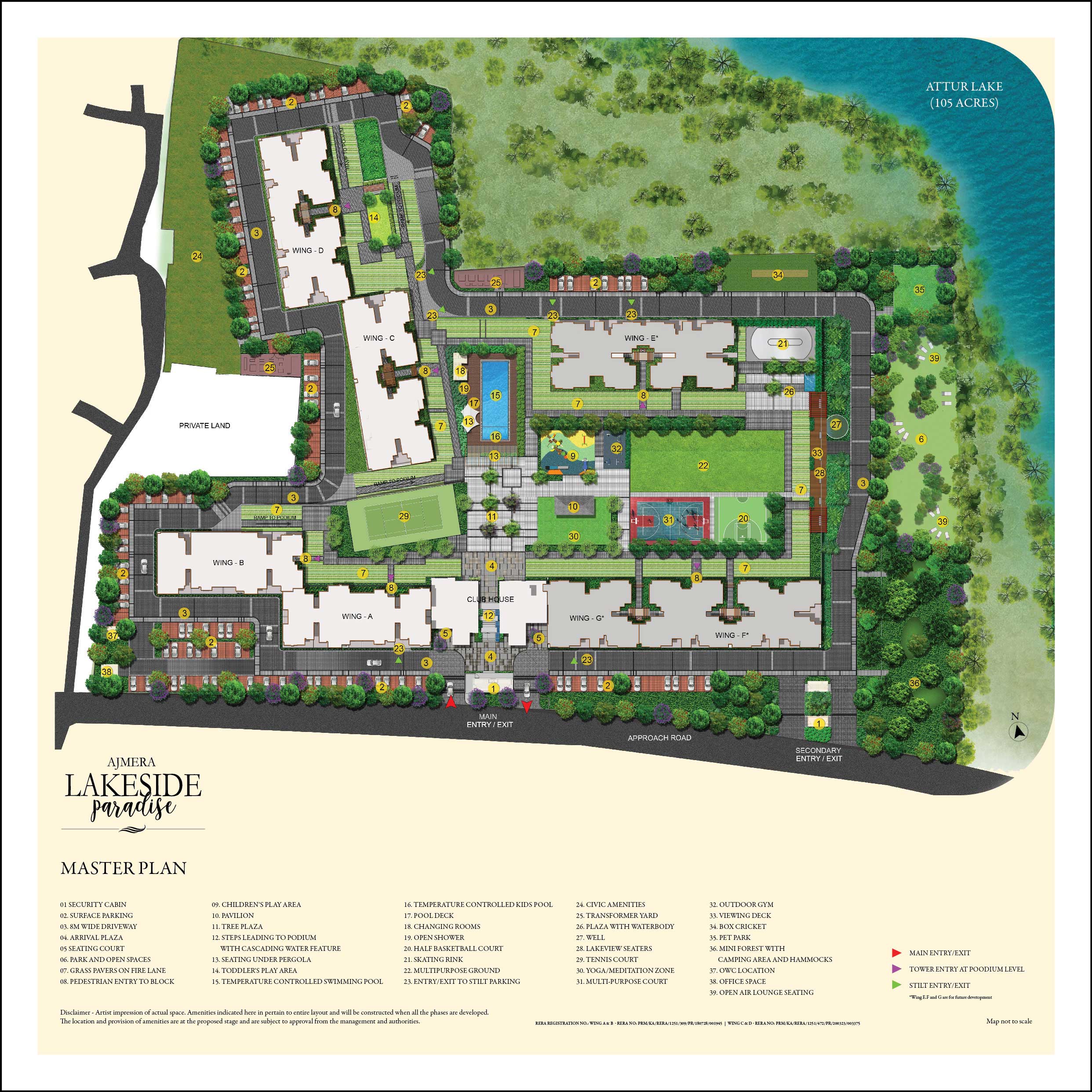 Cycling and Jogging Track Power Backup Swimming Pool Club House Cofee Lounge and Restarents Lift Security Reserved parking Gymnasium Outdoor Tennnis Courts Mediation Area Indoor Squash and Badminton Courts Multipurpose Courts Mediations Area Golf Course |