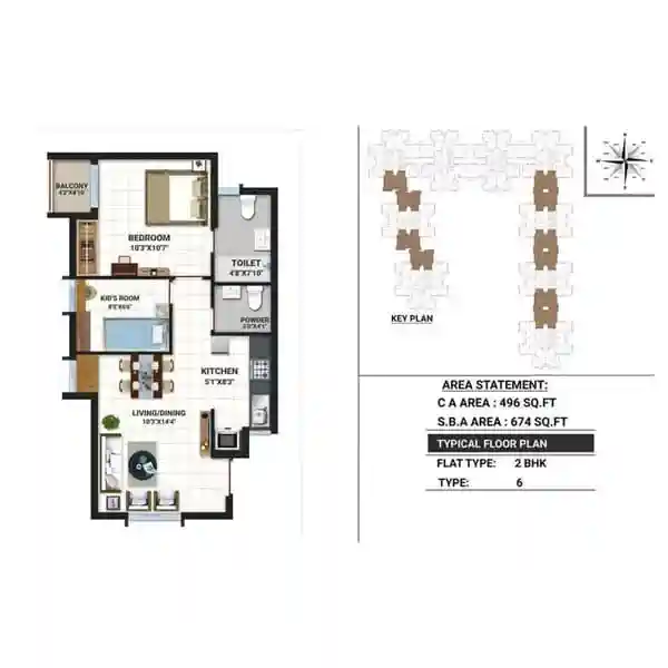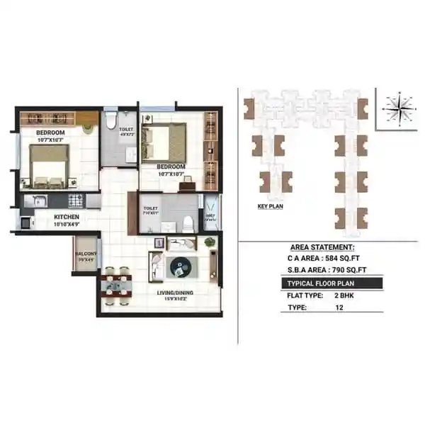 Bren Northern Lights is all about the extraordinary build quality, an expansive masterplan, and stylish, active living. Our 2 BHK apartments are designed to give you a space that's complete in every sense. The well-planned area allows you to adapt the space to any lifestyle, whether it's for the family, the parents, or the solitary individual. Youthful and contemporary styling allow you to bring to life a home that's warm, convenient, and has everything you need.